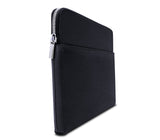 A combination of simplicity and class... This handcrafted laptop sleeve is made with our premium textured cowhide leather and ultra soft micro-suede lining. The spacious side pocket with a nickel zip closure is perfect for the other small items that you carry with you when you are on the go.