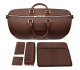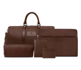 The travel set includes an Aisha Brown Duffle Bag, Aisha Brown Card Holder, Aisha Brown Passport Holder, Aisha Brown Toiletry and an Aisha Brown Laptop Sleeve