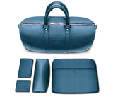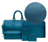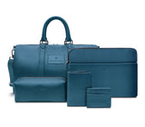 The travel set includes a Brisso Blue Duffle Bag, Brisso Blue Card Holder, Brisso Blue Passport Holder, Brisso Blue Toiletry and a Brisso Blue Laptop Sleeve