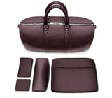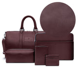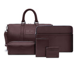 The travel set includes a Brisso Wine Duffle Bag, Brisso Wine Card Holder, Brisso Wine Passport Holder, Brisso Wine Toiletry and a Brisso Wine Laptop Sleeve