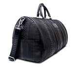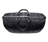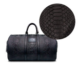 Inspired by the most recent travels through southeast Asia, Barrett Masso designed the Black Python Duffle for those looking for a truly unique (and exotic) bag. The attention to detail and number of hours required to hand-craft a piece made completely from Python is, well, a lot... The spacious interior and multiple carry options – over the shoulder or by hand – make it the essential bag (with an exotic twist). Limited edition drop- only five bags made.