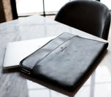 A combination of simplicity and class... This handcrafted laptop sleeve is made with our premium smooth cowhide leather and ultra soft micro-suede lining. The spacious side pocket with a nickel zip closure is perfect for the other small items that you carry with you when you are on the go.